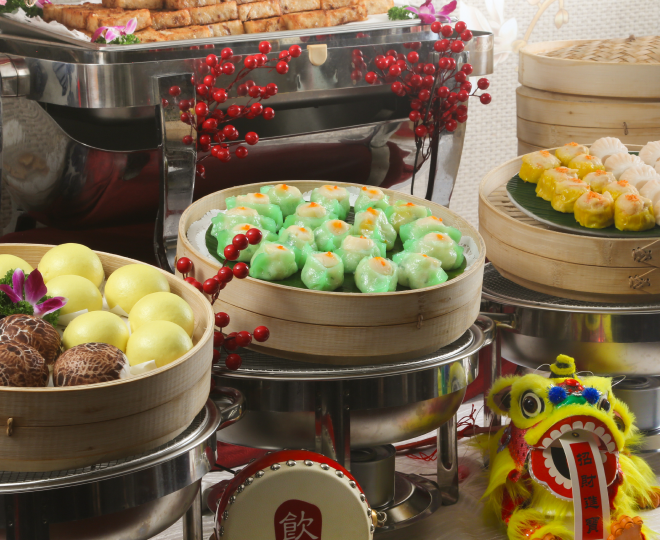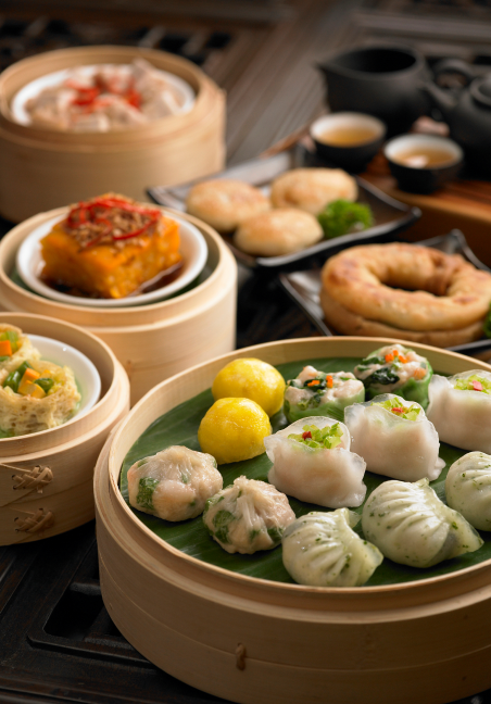 A lighter, elegant afternoon buffet featuring bite-sized dim sum, pastries, and refreshments. Perfect for social mingling or networking sessions.